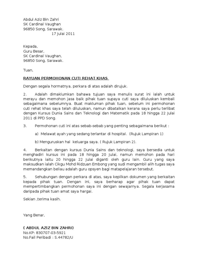 Contoh Surat Rasmi Memohon Cuti Awal Belajar Surat Sekolah